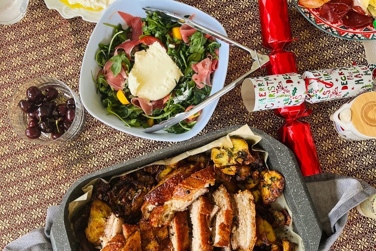 RecipeTin Eat's Slow-Roasted Crispy Pork Belly, with my Crispy Garlic Butter Potatoes