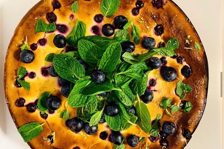 BLUEBERRY MINT BAKED CHEESECAKE