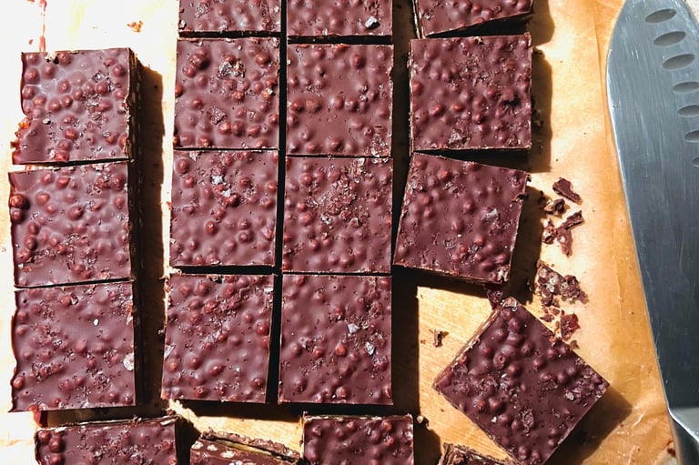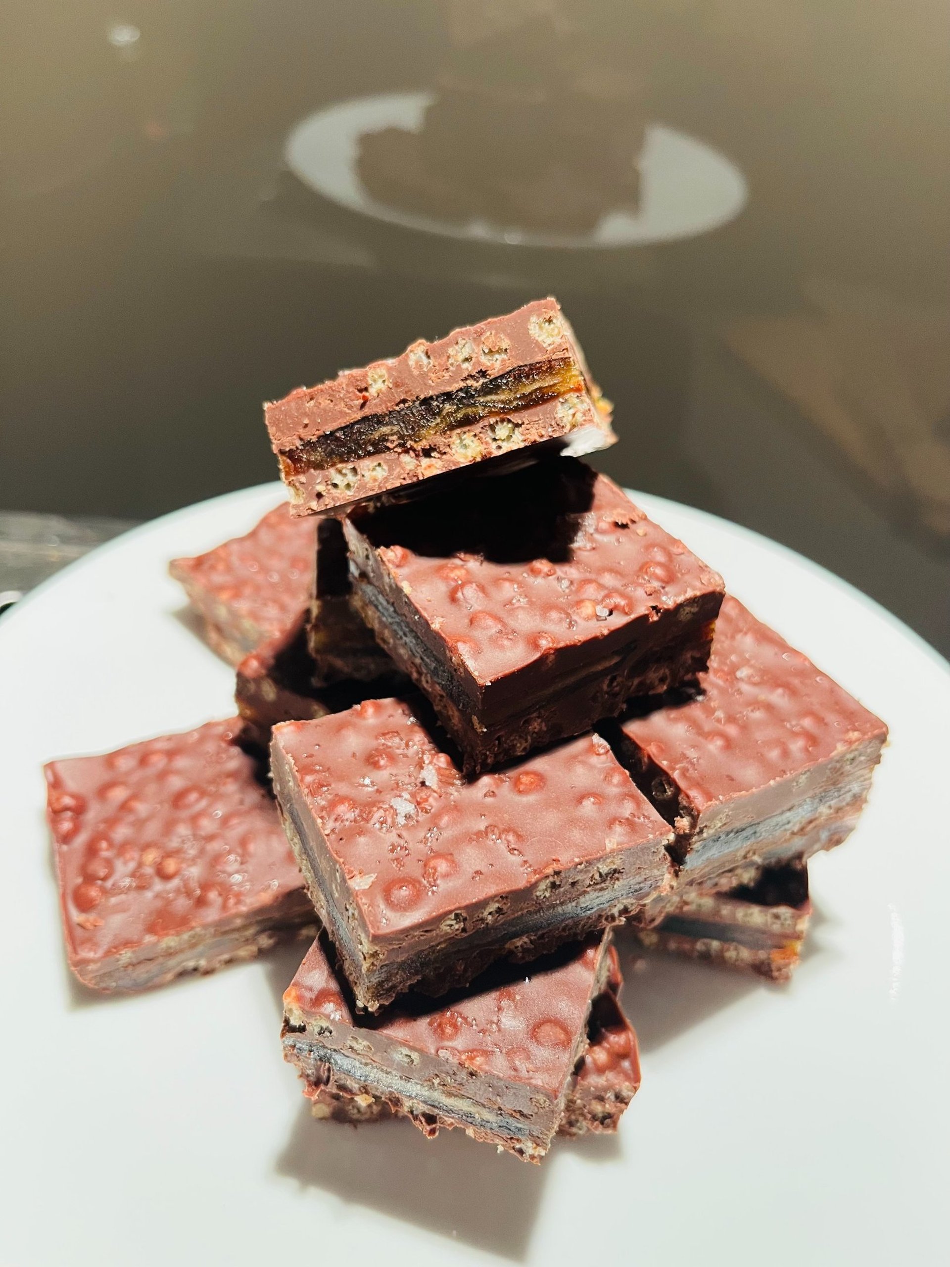 The easiest no-bake chocolate snack, filled with protein, fibre and natural sugars. A much healthier alternative to a chocolate bar, minimal effort, and SO SO SOOOO good. The pressed date layer is uncanny in its caramel energy, the crispy flair in every bite, the velvety dark chocolate… there is too much to love in this delectable treat!