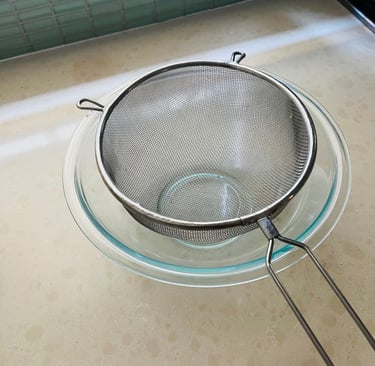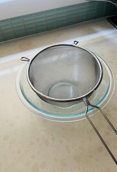 Equipment - medium sieve, medium deep bowl, mixing bowl, paper towels