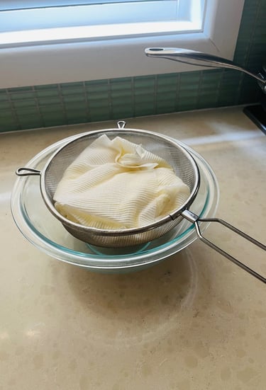 Yogurt needs to strain for 24 hours in the fridge.